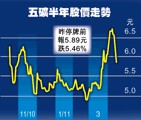【本報訊】在過去半年於海外提出連環收購的五礦資源(1208),昨日在股價插水5.89%後旋即於午後停牌,落實配售新股,其每股配售價為5.2至5.6元,配售11.14億至12億股新股,集資57.93億至67.2億元,較停牌前收市價5.89元折讓4.9%至11.7%。另該公司有權將集資額由現時逾8億美元,再加碼2億美元。