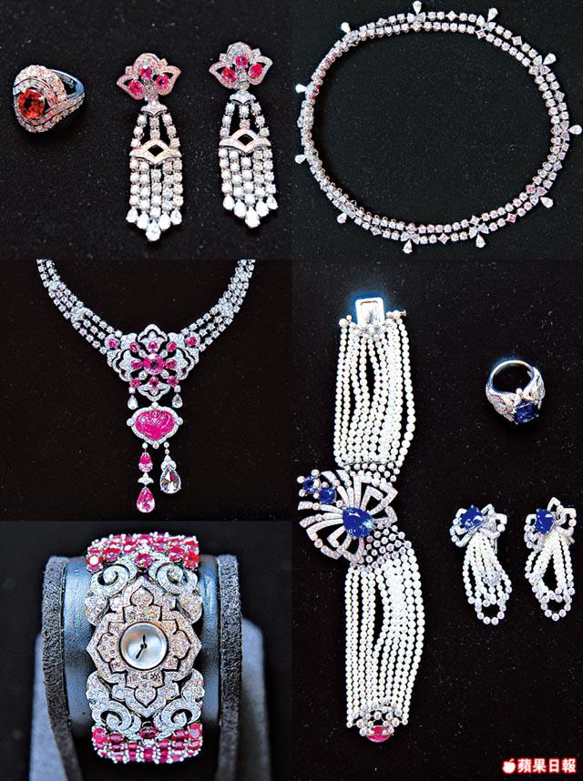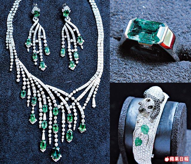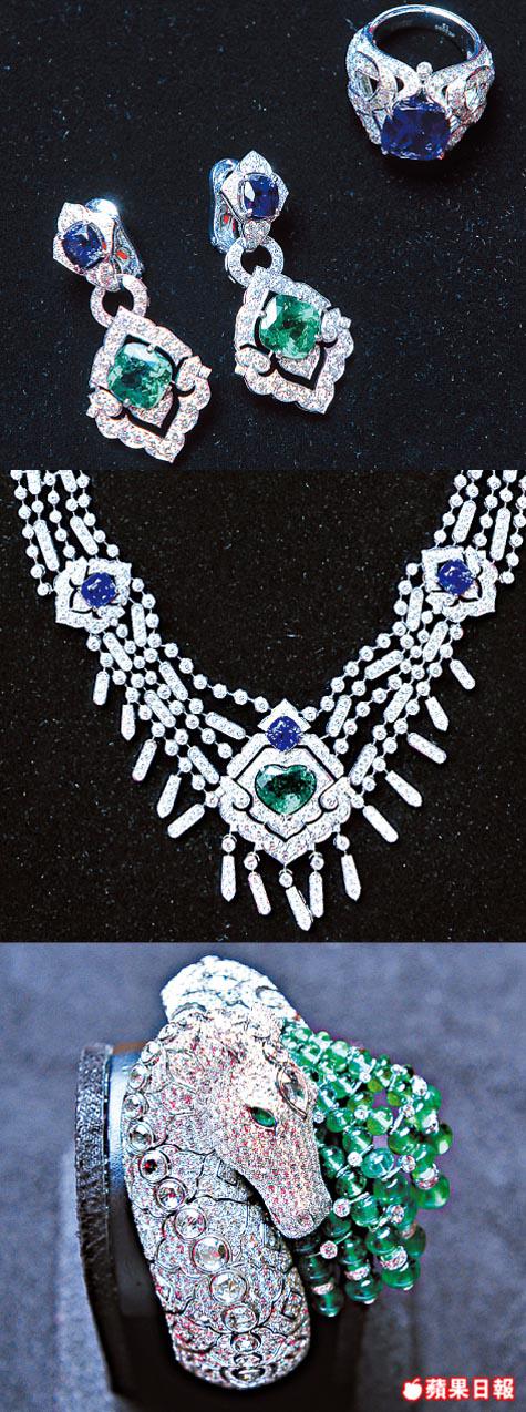 亞洲人黃皮膚和翠綠色調最相配,品牌今年首次推出翡翠系列,今次珠寶展也有多組綠寶石作品。這條圓鑽和綠寶白綠雙色配頸鏈,恍如小河流水交集的圖案,上面鑲嵌了12顆、共重超過20卡的綠寶石,線條和設計簡約別致,一如近年珠寶界回歸的雋永風格。珠寶展由香港首站開始,月底移師澳門,下月巡迴北京和上海站。