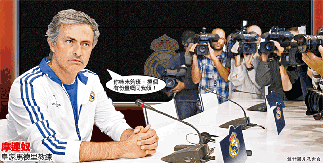 之後,嚟自馬德里記者問其他問題,得到類似嘅答案。摩帥就話,連卡蘭卡呢個球員時代為皇馬贏過3次歐聯嘅人,記者都覺得佢未夠資格做代表,仲有咩好講喎。不過摩帥唔係對所有記者都咁重手,對巴塞隆拿同埋海外記者就有問必答,擺明大細超。鬼咩,摩帥今季執教皇馬後,馬德里記者對佢嘅一切窮追不捨,而摩帥周不時唔畀佢哋採訪操練,雙方關係好僵。