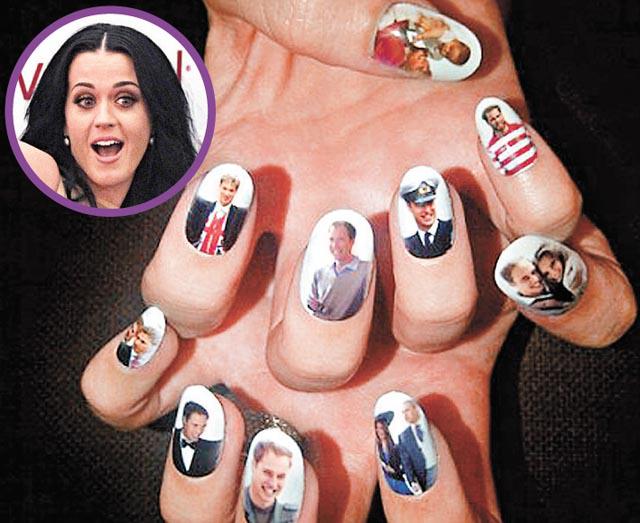 此外,美國女歌手KatyPerry前日亦於twitter上載照片慶祝王子大婚,照中只見Katy如鳳爪一般伸出十隻手指,指甲上更塗滿威廉王子的各種樣貌,認真抵死。Katy說:「感受皇室婚禮的榮耀,我為你帶來……我的皇室指甲!恭喜!」而MileyCyrus及ParisHilton等都在網絡上紛紛道賀。