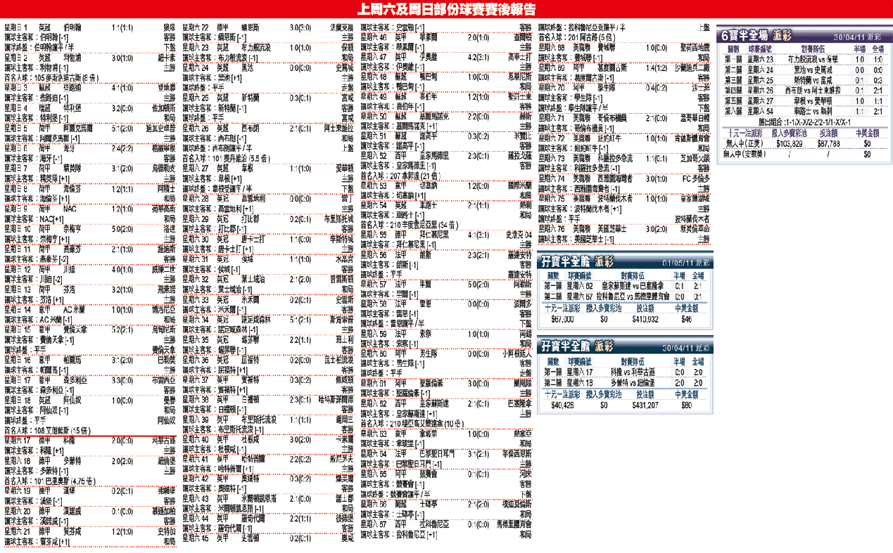 上周六及周日部份球賽賽後報告