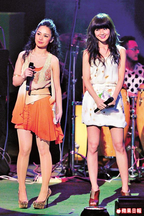 阿嬌(左)和阿Sa前晚各自得獎,兩人一同上台令Twins短暫合體。