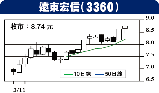 遠東宏信(3360)為一家金融服務公司,透過以設備為基礎的融資租賃,為客戶提供融資解決方案。集團去年盈利急增五成至1.04億美元,營業額3.27億美元,中國全年融資租賃交易總額超過4200億元人民幣,業務仍有大幅的增長空間。雖然該股招股反應只是一般,但股價在上市後不斷攀升,建議8.60元買入,中線目標10元,跌破8元止蝕。
