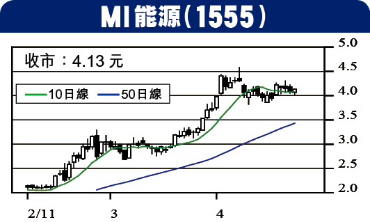 MI能源(1555)主要業務乃根據與中石油(857)簽訂的3份分成合同,在內地經營大安、莫里青及廟三油田,為開發及生產石油提供資金、技術及管理,佔項目合約90%權益,上述分成合同將於2024年至2028年到期,未來可獲穩定的盈利來源,今年業績仍會有增長空間,預期市盈率約12倍,估值吸引,建議4元吸納,目標4.30元,3.60元止蝕。