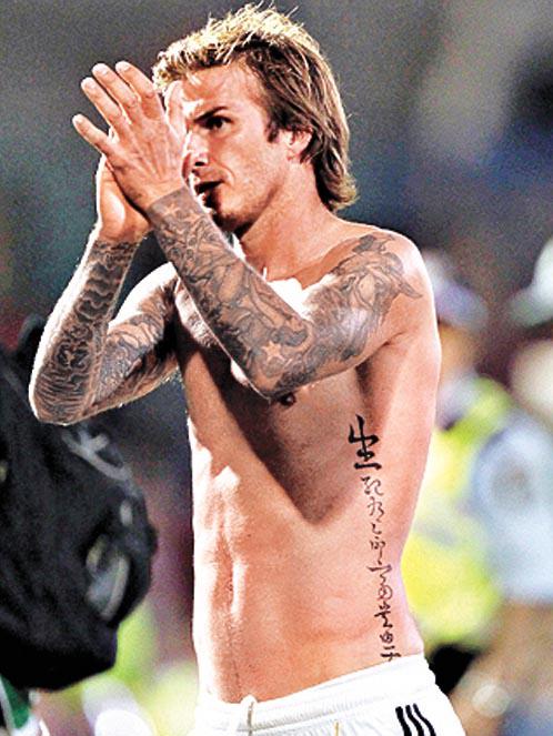 萬人迷球星碧咸(DavidBeckham右圖)於2008年隨洛杉磯銀河大軍來港作表演賽,也找Gabe紋了「生死有命富貴由天」八個中文字在上身,之後Gabe在紋身界更加無人不曉。