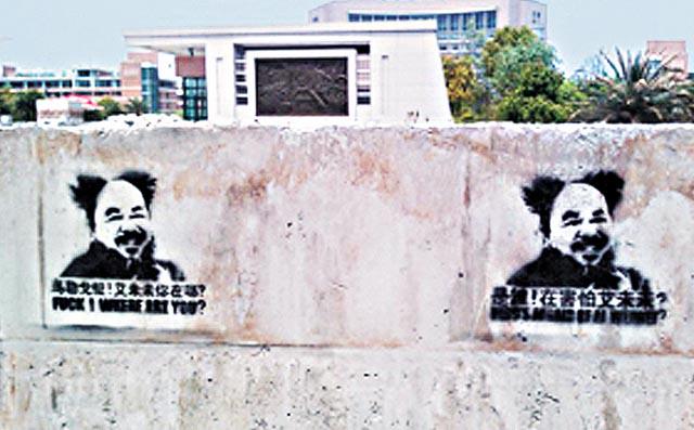 此外,位於杭州的浙江理工大學正門對面牆上,近日也出現聲援艾未未的塗鴉照片,上面寫着「誰在害怕艾未未」。自由亞洲電台引浙江民間學者溫克堅指,浙江理工大學的塗鴉,就是人們以艾未未方式表達對艾未未失蹤的抗議。