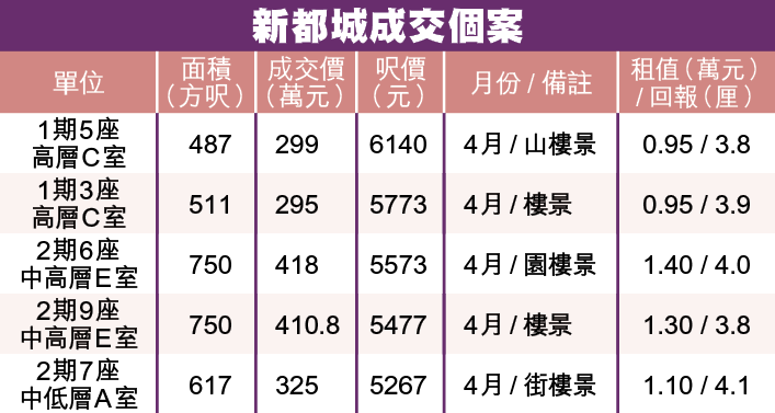 新都城2期規模最大,由11座物業組成,基座商場亦是全區最大,各類食肆商舖齊備。2期樓齡較1期年輕3年,會所設施也較多元化,因此特別受買家歡迎,叫價普遍較1期高。750方呎細碼三房戶入場費410萬元,呎價5467元。