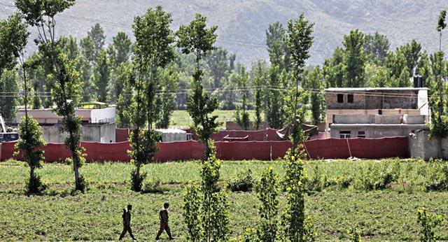 巴基斯坦士兵昨天把美軍狙擊拉登的豪宅封鎖。 路透社
