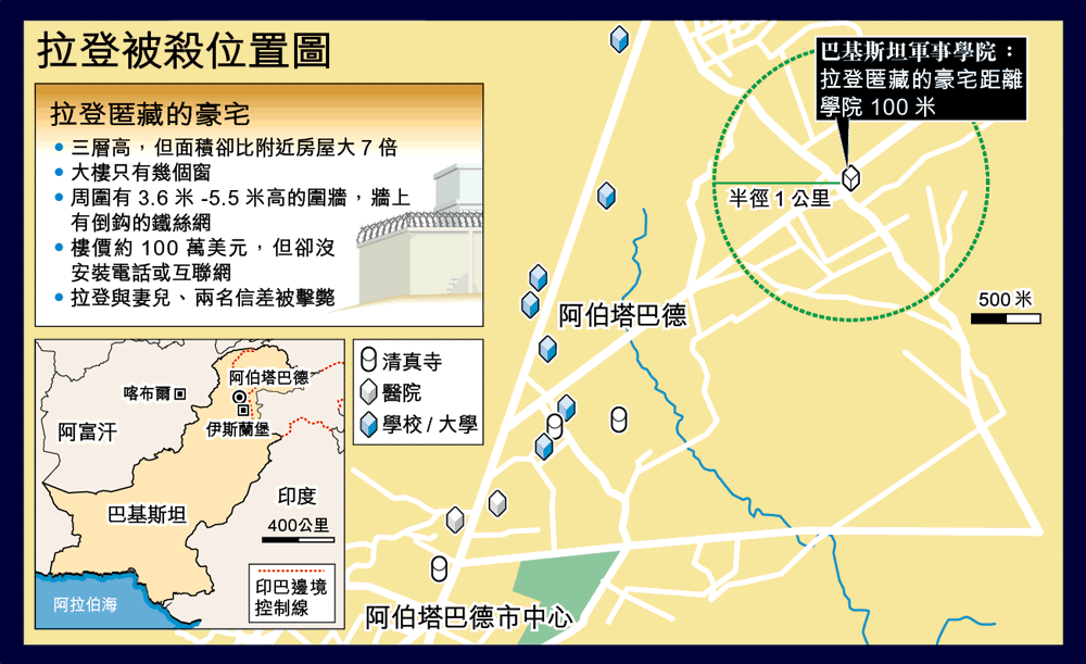 巴基斯坦軍事學院跟拉登匿藏的豪宅相當接近。 互聯網
