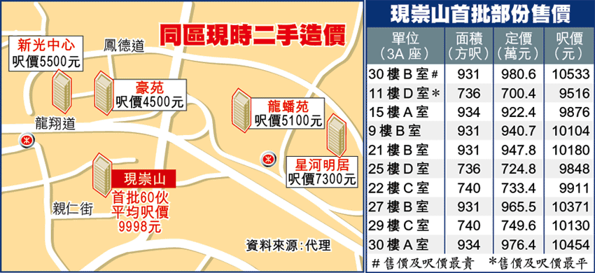 唱高開低 每呎$9998 現崇山市價賣較附近新盤平 遠貴過區內二手