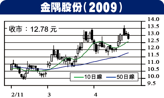 金隅股份(2009)首季淨利潤4.38億元人民幣,增9成多。中央要求增加保障房供應,集團去年保障房結轉面積及預售面積大增。集團土地儲備有近110萬平方米專為發展保障房,並且能將工業用地轉成住房用地,毛利率能維持較高水平。另外,年初獲准併購太行水泥,料未來將加大併購力度。建議於12.50元買入,目標14.50元,破11元止蝕。