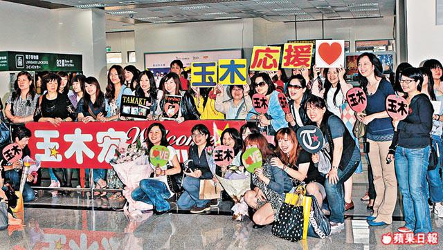 憑着日劇《交響情人夢》中千秋王子一角而走紅的日本男星玉木宏,去年來港演唱開拓亞洲市場後,今年食過翻尋味再舉行亞洲巡演,昨日他先到台灣為7月舉行的兩場演唱會宣傳。有大批台灣粉絲在機場守候玉木現身,更舉起支持他的紙牌歡迎他,現場記者亦一擁而上,令其經理人要出手阻擋記者,免得太過埋身而發生危險。