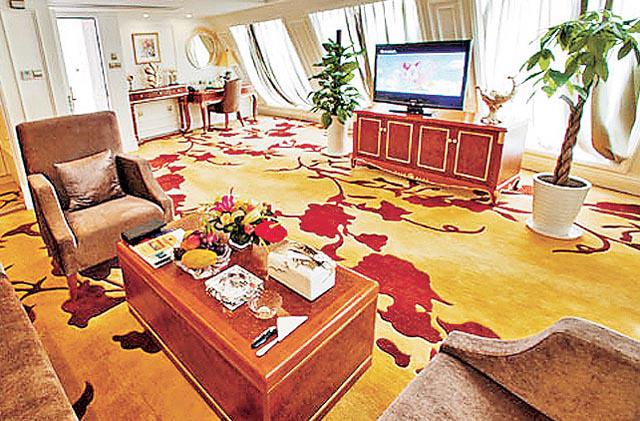若以四天行程計算,郵輪標準房每晚為3,000元起,行政套房為4,500元,比同類郵輪貴10%,總統套房客廳的裝潢相當華麗(圖)。新華網