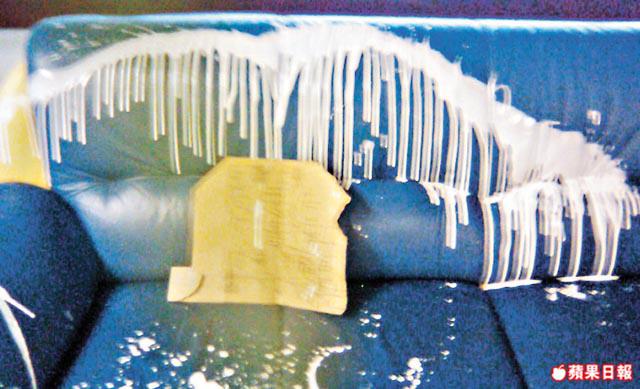 【本報訊】葵涌醫院一名男護士長疑投資失利欠債近30萬元,遭人在醫院電梯大堂淋白色漆油。院方承認有此事,已交警方處理拒絕置評,案件列刑事毀壞。前晚7時許,職員發現八樓電梯大堂,一張藍色沙發遭人淋油,沙發上有一張紙皮,用黑色筆寫:「G7護士長高思X欠債還$」。據稱,這是他一個半月內第三次遭人淋油追債。
