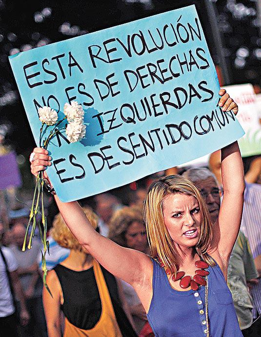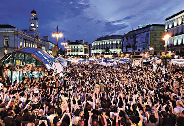 西班牙年輕一代不少不滿失業率高、貪腐和削減副利,對主流政黨再無寄望,發起「西班牙革命」運動,在網上得到幾十萬人和應,本月中起在巴塞隆拿等各大城市佔據廣場紮營抗議。