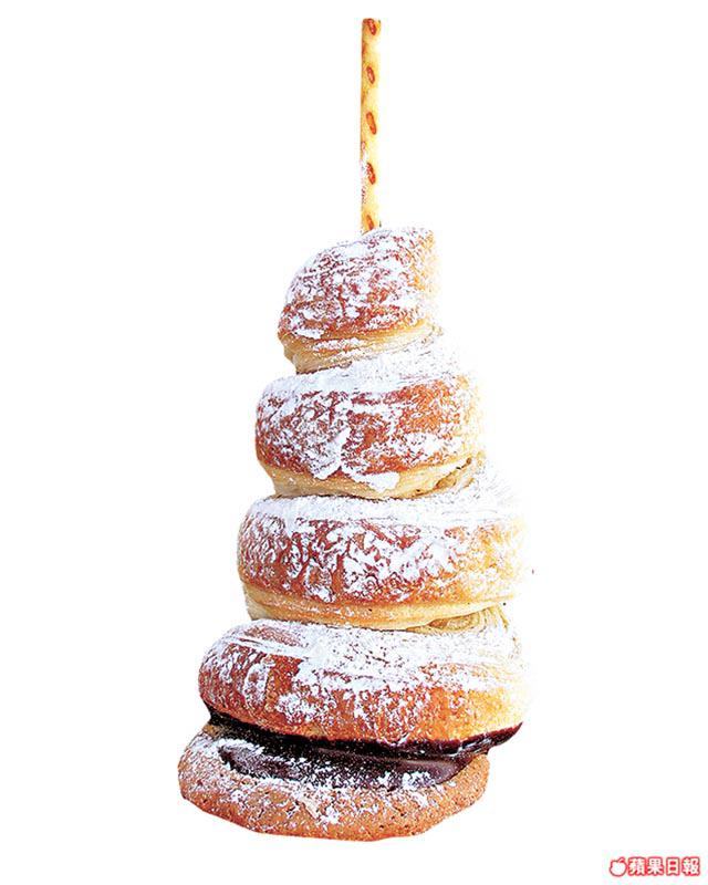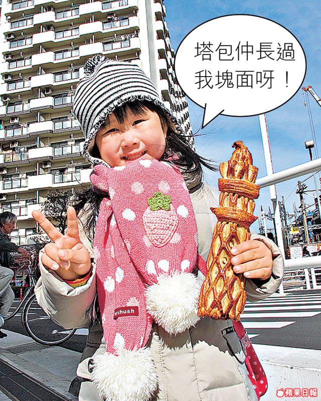 天空樹於墨田區下町一帶,「下町」是指平民地區,街道上多是木建老舖,如這家創立於1956年的麪包店,便因塔潮推出旋風塔形麪包及吉祥物造型麪包。雖然塔包只得16厘米高,但老舖始終着重味道,除以百力滋「增高」外,又以朱古力餅做底,內裏擠滿奶油,外面灑滿糖霜,一咬即爆漿,軟滑無比。