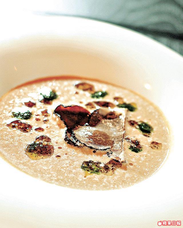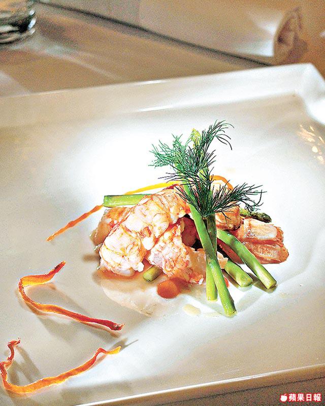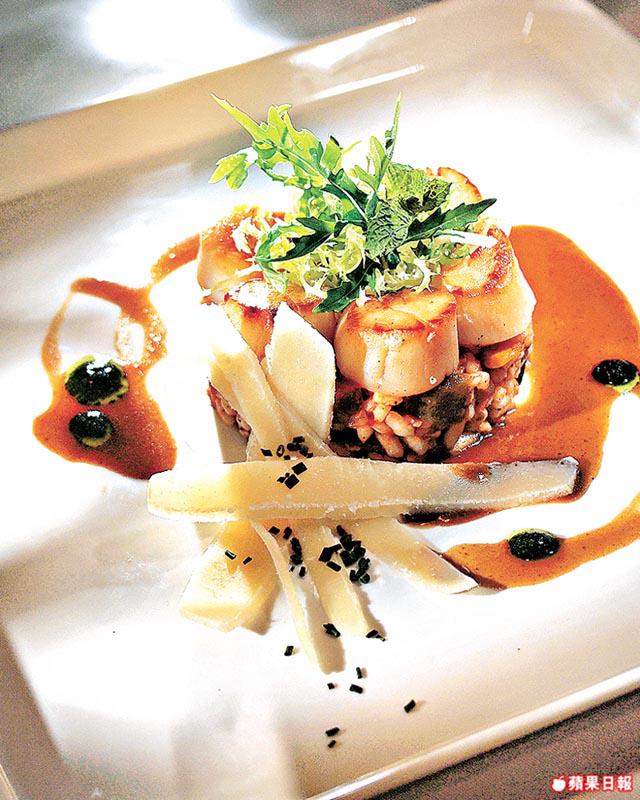 這店六年前在青衣城開業,現搬到上環,邀請到星級廚師EricTaluy坐鎮,他曾獲薦上海世博比利時展覽館餐飲部行政總廚,擅以傳統手法打造時尚菜式。「我的菜式一定要有三個層次,」Eric:「第一是『Eye』,即賣相要吸引,擺設要講究;第二是『Noise』,一咬會發出清脆聲音,意指食材要新鮮;第三是『Taste』,即味道要一流。」