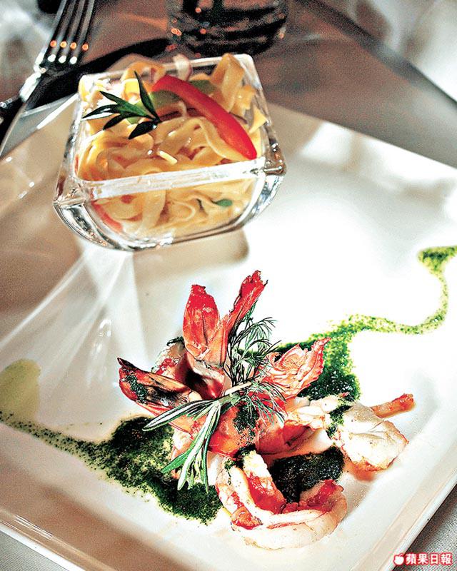 輕煎法國小龍蝦也不得不吃,小龍蝦正值當造,細長蝦箝本身已經很鮮甜,故不作太多調味,沒汁沒醬輕煎至半生熟,就最能嚐到原汁原味。龍蝦繼續上,這次是我最愛的香煎龍蝦配貽貝汁(即青口汁),香煎波士頓龍蝦配用蜆肉煮成的醬汁,海水味濃郁。鮮大蝦配自家製麪條則選用本地大蝦,麪條由Eric親手製造,特別煙韌彈牙。