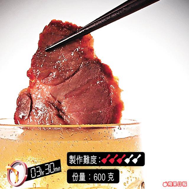 煮汁:日本醬油/味醂各60毫升、水500毫升、清酒/昆布木魚汁各125毫升、薑4片、蒜頭4粒、糖2湯匙、麻油1茶匙、葱段1棵