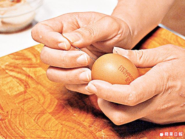 烚蛋前,除了將蛋放到室溫外,最好用針在較闊圓的一端開個小口,蛋就不易爆。