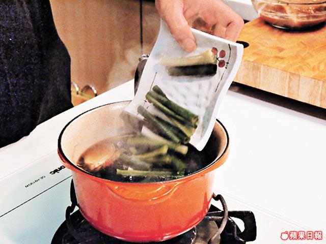 2.煲滾水放出汁素,放意粉煮4分鐘,熄火焗5分鐘,取出浸冰水過冷河。