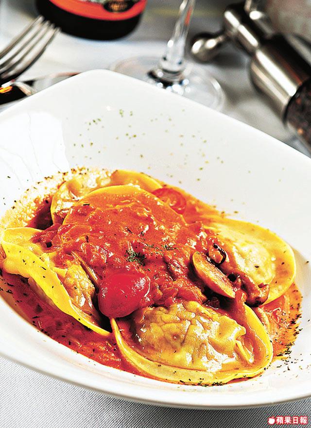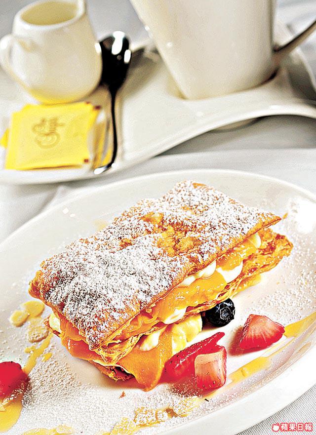 自製意式黑松露鮮蝦雲?最見James的創意,大玩中西合璧,一般意大利雲?皮只混雞蛋,他則加入鴨蛋令其更彈牙,餡料有海蝦和松露,為免汁料過濃蓋過松露香,他選用淡忌廉番茄汁,啖啖肉極鮮味。鮮雜果拿破崙一街有得吃,這裏則由酥皮到吉士全部自家製,蛋味較重,還特地調低甜度,保證不會吃到一口糖。