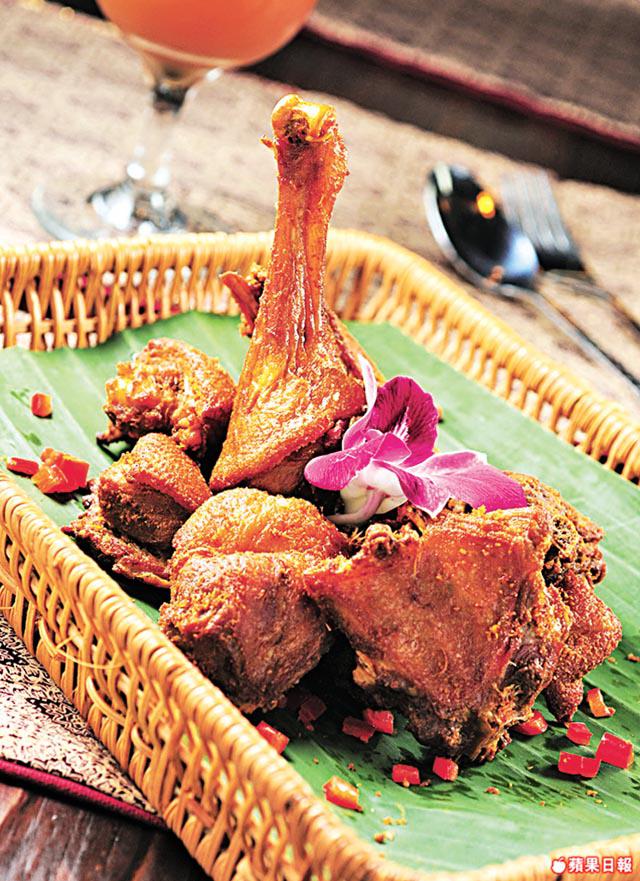 郭生:「峇里名菜Dirtyduck賣相不佳,港人未必接受。」這裏則有變革版峇里炸鴨,鴨肉用黃薑碎、蒜茸、紅葱、南薑和香茅醃過,燜半日至腍再炸脆,味道有點似炸乳鴿,肉質嫩滑極香口。還有一道加卜牛肉,味道似牛肉乾,用椰糖、椰奶、芫荽和Salam葉先醃後燜牛肉半日,指定選用印尼爪哇出產的椰糖,椰味濃甜帶微辣,才吊得出牛肉鮮香味。
