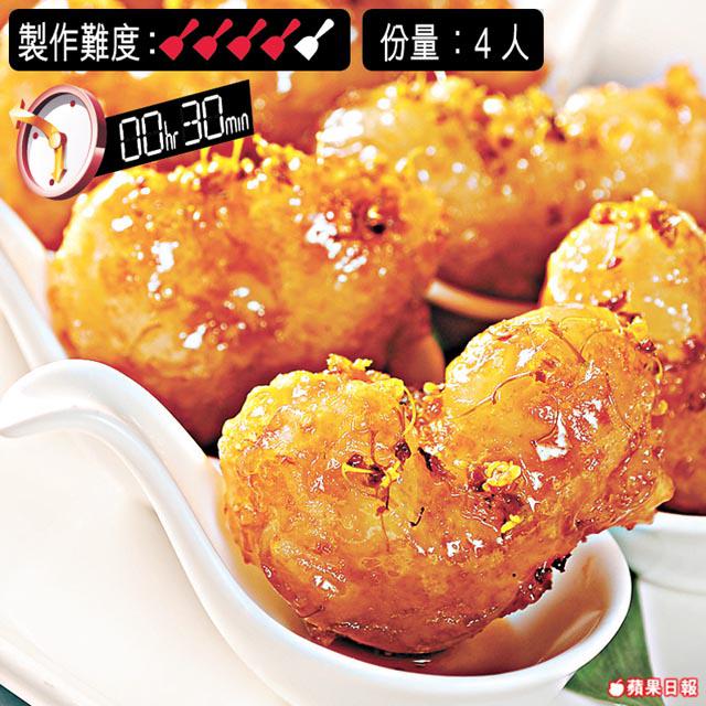 用桂花做甜品試得多,用來做炸脆蝦球又試過未?蝦球好鬆化香脆,配上酸甜的汁料好開胃啊!