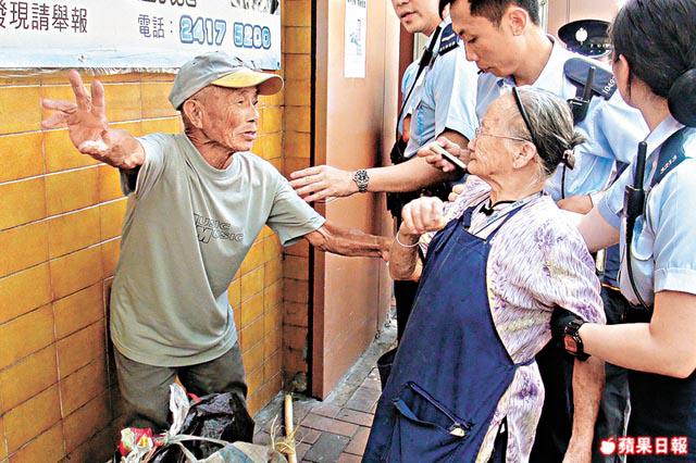 相反一度被指妨礙公職人員執行職務及傷人的李婆婆則站在行人路,倚在街市牆邊獨力與包圍她的一批食環署人員理論。警員到場欲將婆婆帶上警車返警署調查時,她一度受驚情緒激動哭起來,一名女警上前安慰,其他警員則拿來一張凳給婆婆坐下休息。由於婆婆情緒久未平復,警員遂召救護車將她送院,然後再帶署調查。