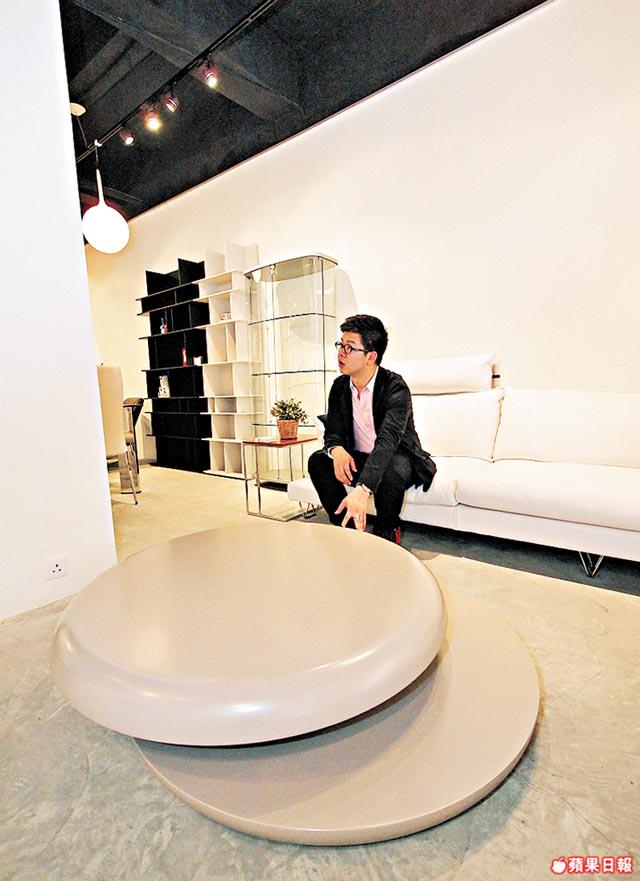 在廖奕權(WesleyLiu)背後的其實是一張用Parametric概念設計的桌子,配件早已mark好數字,用家可自行拼合,這樣生產成本亦可減低。
