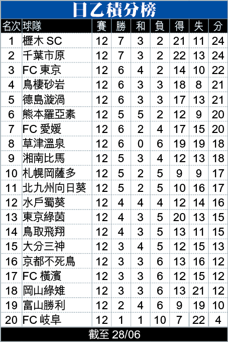 至於榜首的櫪木SC將會到訪鳥棲砂岩,後者的主場頗硬淨,但櫪木SC近況確實好,過去5場取得3勝2和,未嘗一敗,故就算今仗作客勝算不高,惟有機會力保不敗,值取[+1]的「客勝」。