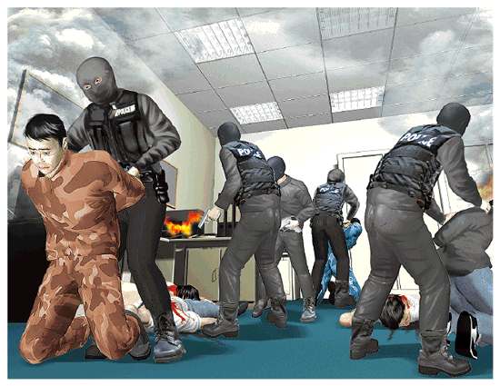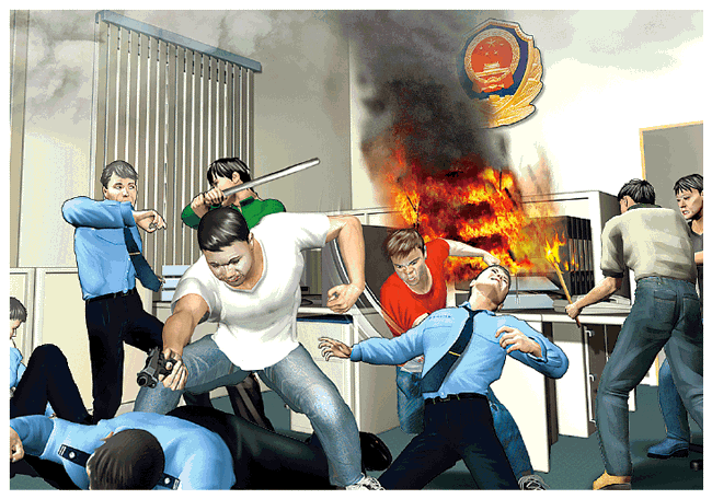 人民網指,遇襲的是和田市納爾巴格街道派出所,遭一群打着聖戰標語,手持砍刀、斧頭、燃燒瓶等年輕、極端宗教分子襲擊。與派出所一起辦公的工商所也受到衝擊,兩名幹部受傷。事發後,公安、武警趕赴現場,當場擊斃14名、槍傷1名負隅頑抗的暴徒。