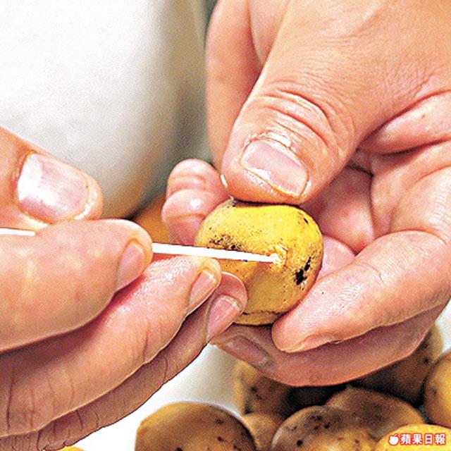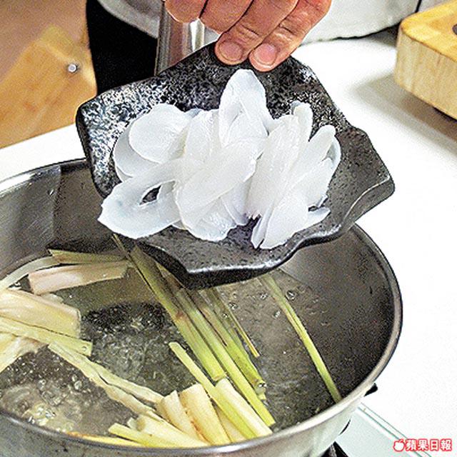 1. 海底椰略浸水中,刮去外皮,切薄片。