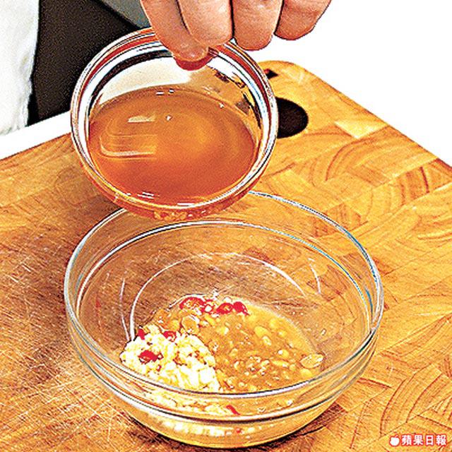 辣汁:糖/白醋各2湯匙、豆瓣醬1湯匙、蒜茸1茶匙、魚露1/2茶匙