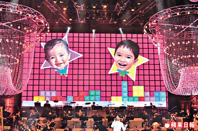 李克勤和小交響樂團的演唱會前晚在紅館舉行,台上他盡騷歌藝,又播出和老婆盧淑儀跟大細仔Ryan及Rex的親子照大晒溫情。克勤還唱別人的歌諷刺社會熱門話題,不避嫌辣到小甜甜龔如心和陳振聰及低胸紫荊俠。