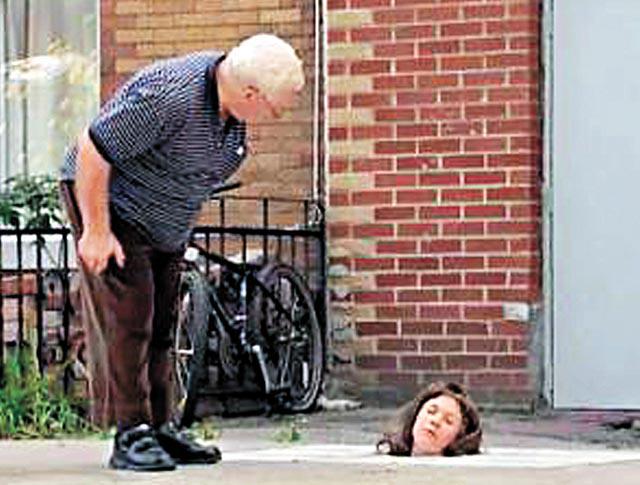 不知情的路人,還以為那是假人頭,想幫助拾起來。沒料當他們一碰到人頭,人頭就有反應,嚇得他們尖叫、驚呼、魂飛魄散。最後演員出來解釋,這只是惡作劇。