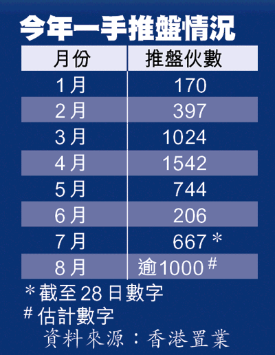 業界預期,本月推盤量勢增加,估計至少1000伙一手貨陸續開賣搶客。