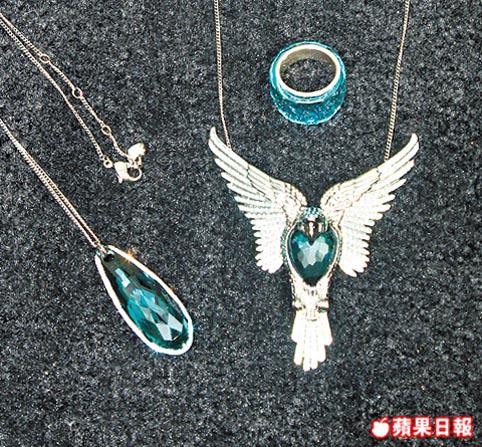 系列中,Phenix頸鏈以翠藍色及紫羅蘭色水晶打造的鳳凰,配合鍍銀色翅膀,無論單件佩戴或配襯Perfection頸鏈,同樣顯得簡單又高貴。裴蓓就謂Phenix件頭大之餘又不誇張,最適合去party,她說:「平日外出我喜歡小巧和簡單點的,予人小女生的感覺,但去party這種款式就剛剛好。」另一條Parade頸鏈,同樣以藍色及紫羅蘭色水晶打造,外側配上羽毛造型的透明馬眼切割水晶,加上造型誇張,大膽又有型格。