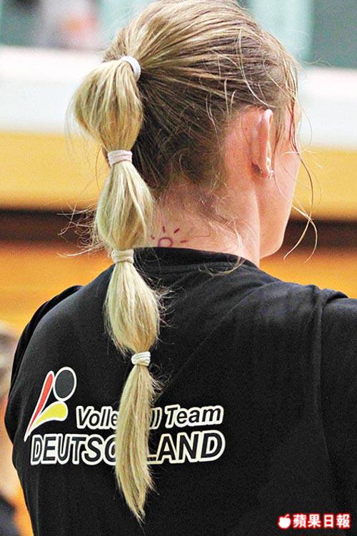 24歲的「德國舒拉寶娃」科素絲,去年憑美貌俘虜不少男球迷,今年再度來港,成為大獎賽宣傳海報主角之一外,頸上更多了一個「太陽」紋身,靚樣背後多了份「潮味」;同舒娃一樣有個籃球員男友的科素絲,仍帶着男友送的戒指,但坦言未是時候談婚論嫁。
