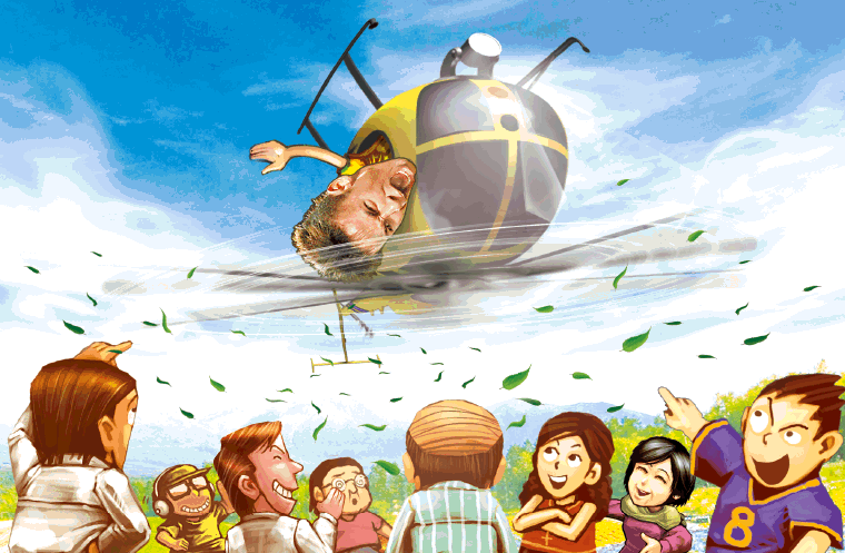 途中見到類似《鐵血戰士》嘅模型,尼馬仲即時變咗粉絲,高舉智能電話狂影一番。熱身一輪之後,刺激遊戲終於登場,就係坐上紅牛直升機玩360度反轉再反轉!尼馬最初都好淡定,直升機倒轉嗰陣淨係識狂笑,大笑一輪後終可腳踏實地,場地亦由薩爾茨堡轉咗去位於斯彼爾堡嘅賽車場。