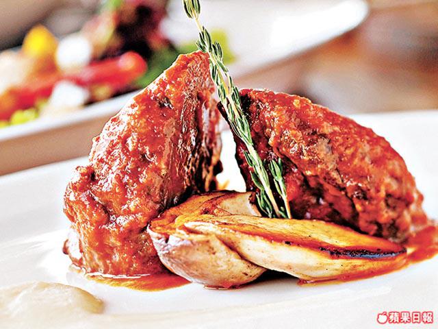 加點煎過的牛肝菌點綴,肉類鮮味即時提升,意大利牛肉.焗牛肝菌配芝士焗番茄及燈籠椒汁份量十足,牛肉經過風乾,連肥膏骨頭吊起風乾一個月,血水流走牛味更濃,放入烤爐煎香,蘸用燈籠椒煮成的醬汁,還有焗牛肝菌和芝士焗番茄,肯定滿足大胃王。女生怕肥,可選秘製牛肉香腸意大利雲吞.牛肝菌配風乾火腿及香草汁,意大利香腸拆走腸衣作雲吞餡,份外鹹香。最後一道燴牛面頰肉.蘋果茸.炒牛肝菌配紅酒汁,食肉獸肯定至愛,澳洲和牛用紅酒、雜菜和香草燴過,炒牛肝菌香噴噴,青蘋果茸能中和牛肉肥膩感,一流。