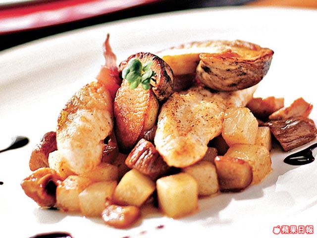 牛肝菌配海鮮,同樣變化多籮籮,Kinki最愛頭盤紅蝦.帶子.牛肝菌串配田園沙律及烚鵪鶉蛋,海鮮與牛肝菌串起一併燒,香口無比,建議刺穿半生熟鵪鶉蛋當醬汁,混沙律吃,滑溜溜最滋味。焗鮟?魚柳.牛肝菌配薯仔紅洋葱及紅酒汁也不俗,薯仔和牛肝菌切件置底,魚柳放中間,頂層放紅洋葱,最後淋紅酒汁,魚柳鮮嫩牛肝菌爽口,口感大滿足!愛香口的話,那就不能錯過芝士焗左口魚.天使麪.牛肝菌配脆蒜片,魚肉清淡芝士味濃,蘸用牛肝菌製成的醬汁,伴脆蒜片與意粉一併放入口,感覺特別鮮味。
