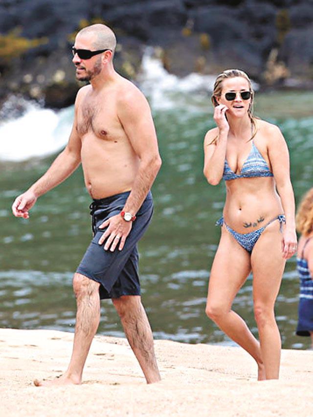 今春覓得人生第二春的金像影后麗絲蕙絲潘(ReeseWitherspoon),近年盡量保持一年一片的工作狀況,以騰出更多私人時間去玩及陪伴至親。或許暫時未須開工玩得盡興,麗絲上周末跟丈夫和一對子女到夏威夷戲水,露出引人注目的小腹紋身,還見肚子微凸,索女形象不再,難道其腩肉是懷孕先兆?
