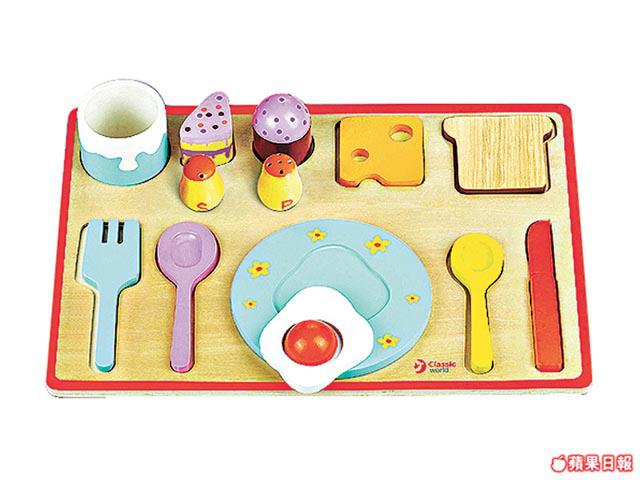 這款早晨全餐木製餐具,可讓孩子從中學習餐具使用及不同食物造型,遊戲期間更可訓練手眼協調。$199/c