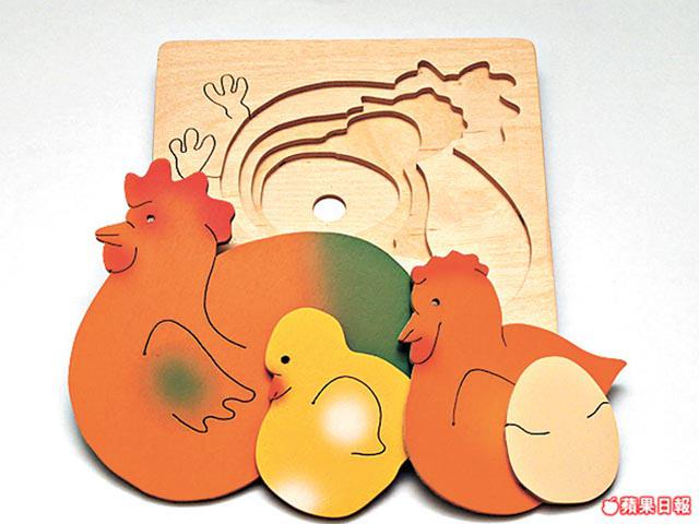 動物積木展示了動物的演變過程,小朋友一層層掀開積木,發現雞是由蛋變成。另有青蛙及蝴蝶系列。$100/b