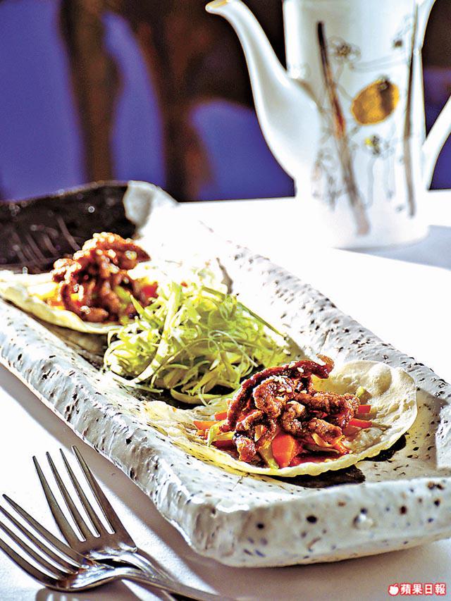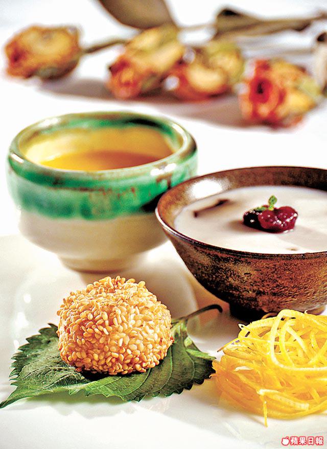 五道主菜之中,薑煸牛柳絲堪稱牛柳絲版咕嚕肉,醬汁用荔枝醋、茄汁和日本生粉製成,酸甜醒胃,下墊餅皮一塊方便送入口,盛載器皿選用重身長碟,賣相可人。講賣相最精緻,必數杯上的魚子蛋白龍躉球,由底層數起,依次序為上湯蒸鮮奶蛋白、龍躉球和魚子,蛋白滑,魚肉鮮,加拿大魚子味濃,靚到不捨得舀散吃。秘製茶皇煙熏雞,用六安茶葉熏新鮮三黃雞,嫩滑得無話可說,高湯大白菜,半湯半菜上碟,湯甜菜香味濃。嫌無飯下肚?素八寶炒飯絕對是飽肚之選,薑粒、欖角和素菜粒等餡料很清淡,入口有飯香。最後的甜品三弄,有齊糖水、糕點和煎炸食物,蘆薈芒果露用菲律賓呂宋芒,極香甜;仙草椰汁糕用鮮椰汁製,味道清新;炸湯圓餡料為傳統芝麻茸,脆口十足!