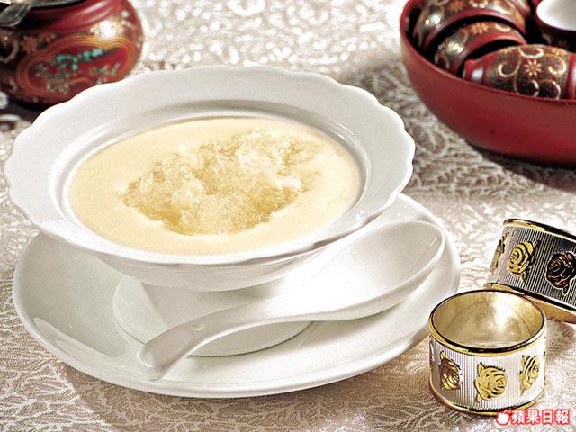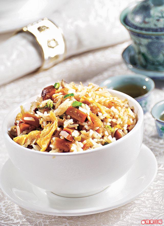 鮑參翅肚等主角固然美味,但也要綠葉扶持。開胃前菜三選一,拍青瓜皮蛋又如何?再不來個麻油海蜇,海蜇與青瓜同樣彈牙,愛濃味者可選五香牛。另一道頂湯焗芥蘭度,去蕪存菁爽到入心,壓軸登場有大喜慶炒飯皇,盡得炒飯第一真義──少油、粒粒識跳。最後一道杏汁燉官燕,印尼白屋燕熱住上,養顏之選。