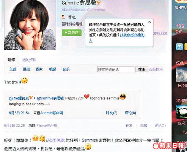 Sammie點頭示意現時住在Ronald的淺水灣大宅,跟老爺奶奶同住。至於Ronald有否離婚陰影?Sammie大晒幸福說:「我唔覺,總之我好開心。」Ronald有否送結婚禮物?Sammie又冧爆說:「個女已經係最大嘅禮物,係佢送畀我。」她透露現在仍餵人奶,希望親力親為湊囡囡,若有合適工作也會接洽,Ronald會尊重她的決定。提到和老爺奶奶相處,Sammie表示很融洽。
