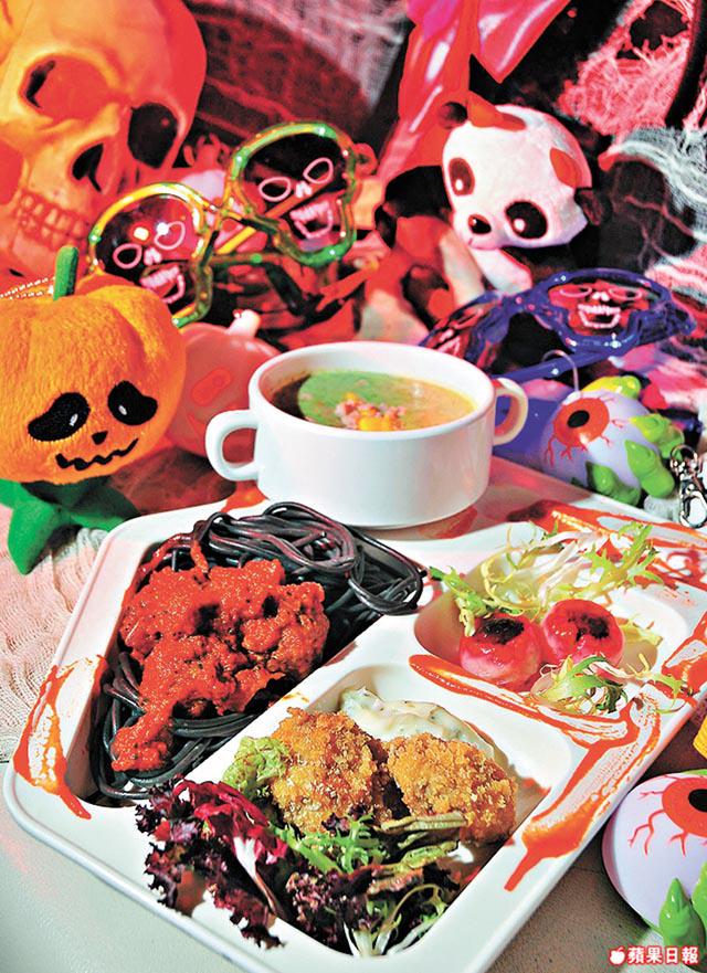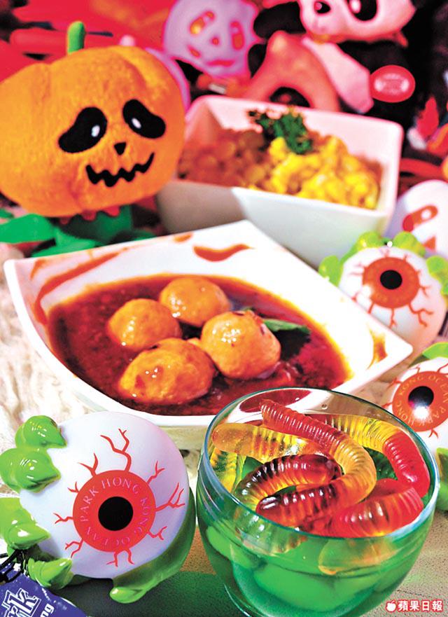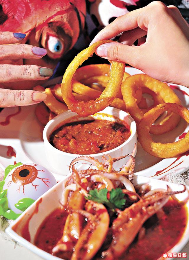 並非人人都餓鬼投胎,不吃套餐,其他小食或蛋糕一樣多滋味。從鬼域飛來的蝙蝠,乖乖俯伏圓碟之上,變身「鬼域薄餅」,蝙蝠狀Pizza還是第一次見;劈下幽冥鬼手,變成「血池猛鬼爪」,說穿了不過是香辣魷魚鬚;一顆顆人頭團團轉,堆成「血池骷髏頭」,即是人人皆愛的香辣魚蛋;從杯裏爬出來的「幻彩屍蟲」,顏色鮮艷,是一條條蟲仔啫喱糖;還有「兇眼再現」,即意大利肉醬洋葱圈,名字夠嚇人,味道卻醒神。