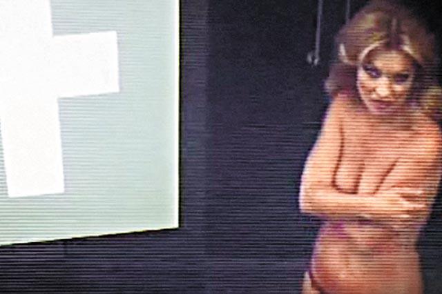 之後她繼續跑樓梯,一邊灑脫剝衫,脫剩內褲和高踭鞋──當然還塗了她最愛的鮮紅色唇膏──在梯間遊蕩,最後跑上天台坐直升機離開。姬摩誘惑盡在不言中。英國《每日郵報》